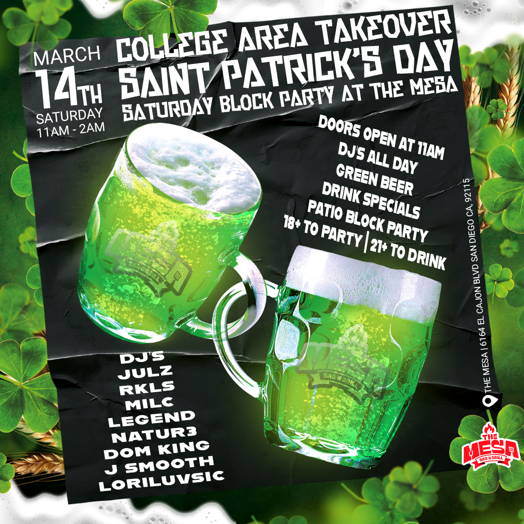 Kick off the weekend at one of the top College Area bars in San Diego. Mesa Fridays features DJ Mileena spinning hip-hop, throwbacks, and crowd favorites.